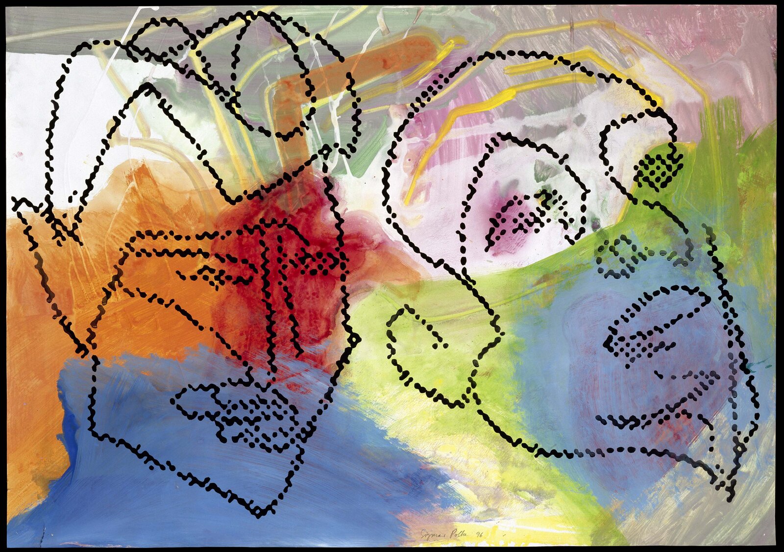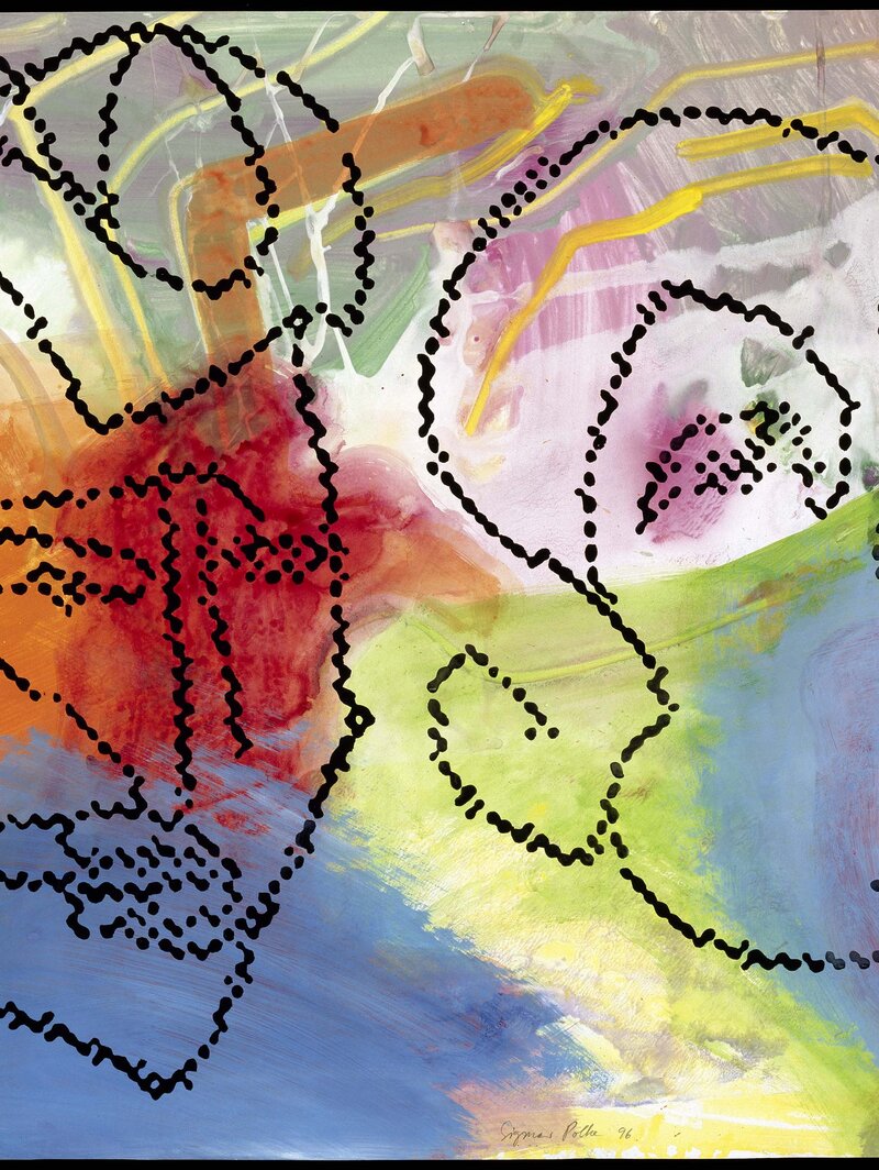Polke a kiállításon bemutatott alkotásokon keresztül a vizes gouache-ok jellegéből kiindulva a festék csöpögését és áramlását, a fizikai jelenségek kontrollált és kontrollálhatatlan előfordulását tematizálja.